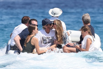 Adrien Brody i jego partnerka Georgina Chapman całują się po przybyciu do Club 55 w Saint-Tropez