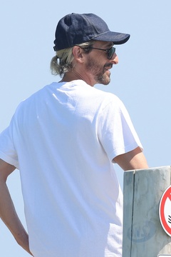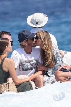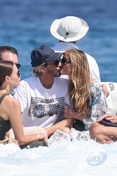 Adrien Brody et sa compagne Georgina Chapman s'embrassent en arrivant au Club 55 à Saint-Tropez