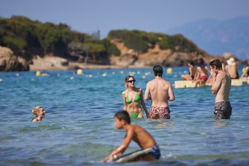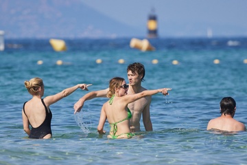 Ashley Benson, jej mąż Brandon Davis, Emma Roberts i jej narzeczony Cody John bawią się jak duże dzieci na plaży podczas wakacji w Zatoce Saint-Tropez 92