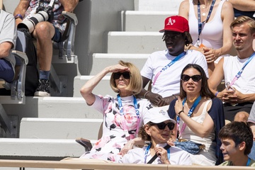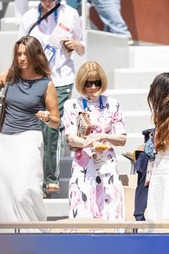 Anna Wintour assiste à une épreuve de tennis féminin lors des Jeux Olympiques de Paris 2024 (JO) à Roland Garros