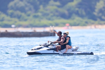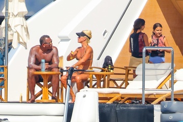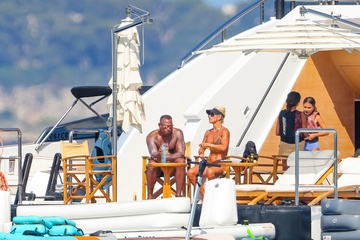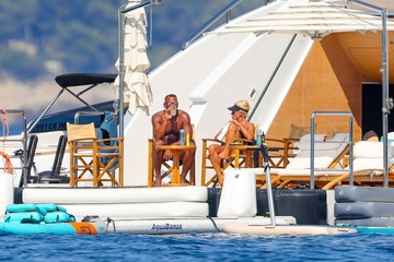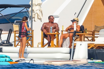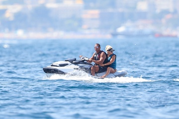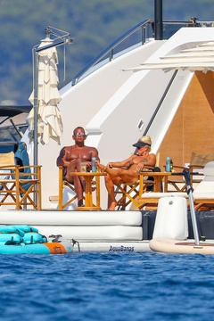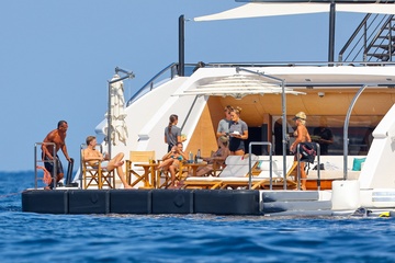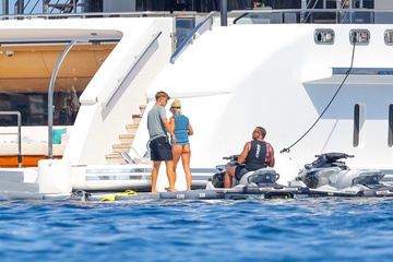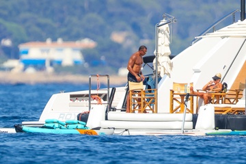 Exclusif - Alex Rodriguez avec sa compagne Jaclyn Cordeiro et ses enfants sur un yacht près de Cannes