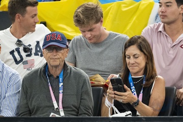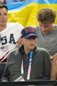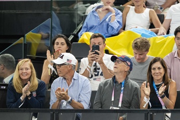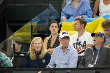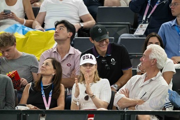 Les célébrités assistent aux épreuve de gymnastique artistique lors des Jeux Olympiques de Paris 2024 (JO) au Palais omnisports Bercy Arena