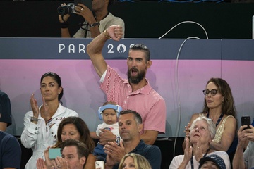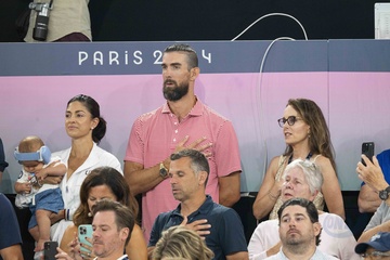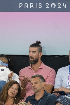 Michael Phelps et sa femme Nicole Johnson - Célébrités assistent aux épreuves de gymnastique lors des Jeux Olympiques de Paris 2024 (JO) au Palais omnisports Bercy Arena, à Paris (Michael Phelps)