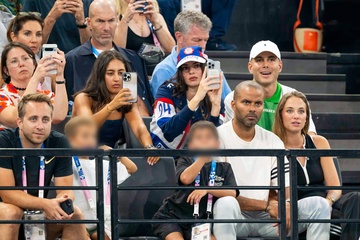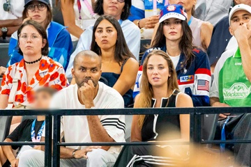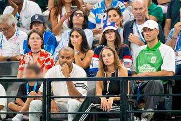 Les célébrités assistent aux épreuves de Gymnastique artistique féminine, finale du concours général lors des Jeux Olympiques de Paris 2024 (JO) au Palais omnisports Bercy Arena