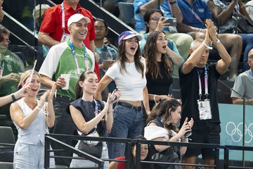 Fai Khadra, Kendall Jenner, Sarah Staudinger i jej partner Ariel Emanuel – biorą udział w wszechstronnym finale gimnastyki artystycznej kobiet na Igrzyskach Olimpijskich w Paryżu w 2024 r. 17