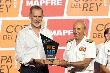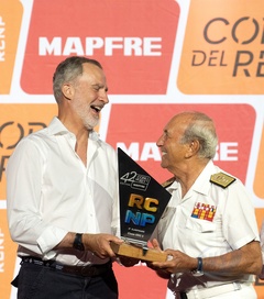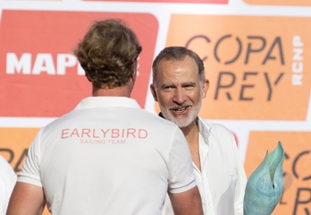 Król Hiszpanii Felipe VI wręcza nagrody mistrzom regat żeglarskich „42. Copa del Rey-Mapfre” w Palma de Mallorca