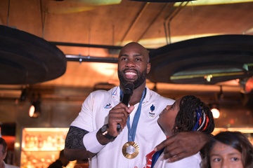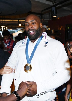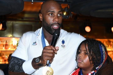 Teddy Riner świętuje swój tytuł mistrza olimpijskiego w judo +100 kg w należącej do grupy restauracji „Podium” (Les bistrots Pas Parisiens) w Paryżu. 75