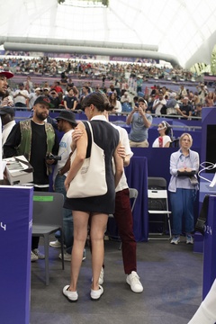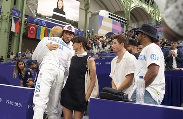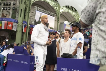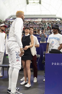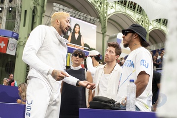 Les célébrités dans les tribunes de l'épreuve d'Escrime au Grand Palais lors des Jeux Olympiques de Paris2024 (JO)