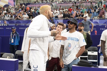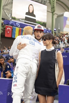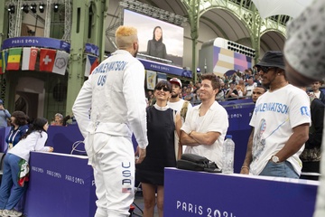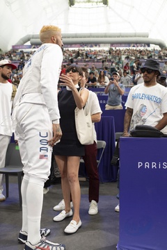 Shaun White gwiazdy na trybunach wydarzenia szermierki w Grand Palais podczas Igrzysk Olimpijskich Paryż 2024