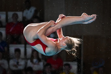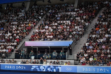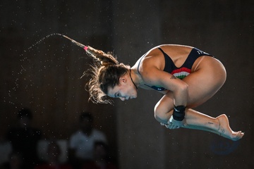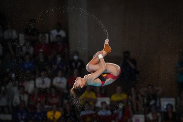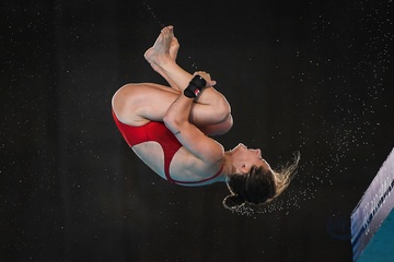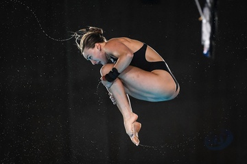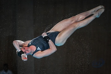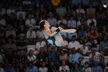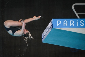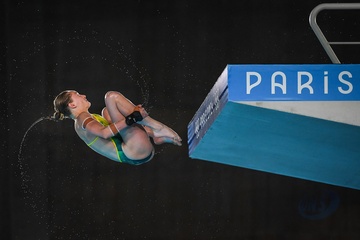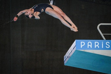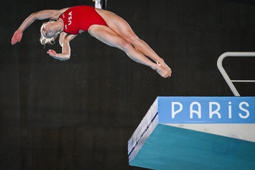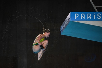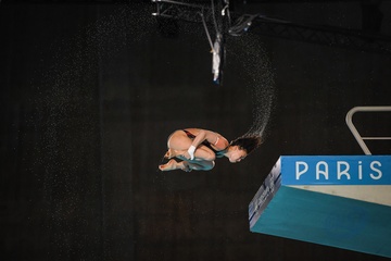 Epreuve de plongeon haut vol 10 m femmes lors des Jeux Olympiques de Paris 2024 (JO) au Centre Aquatique de Saint-Denis