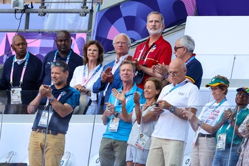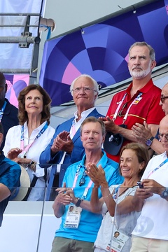 Król Karol XVI Gustaw, królowa Sylwia, król Felipe VI, księżniczka Catharina-Amalia i wielki książę Henryk Luksemburga biorą udział w zawodach lekkoatletycznych podczas Igrzysk Olimpijskich w Paryżu w 2024 r. (OG) na Stade France 12