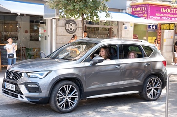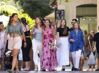 La reine Letizia d'Espagne, ses filles la princesse Leonor et l'infante Sofia, la reine Sofia, se baladent à Palma de Majorque