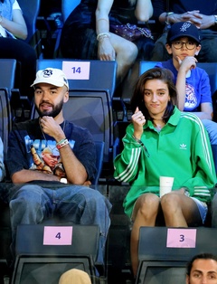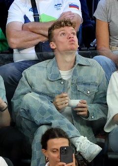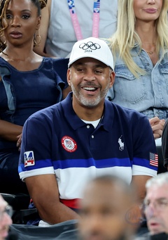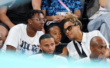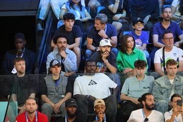 Célébrités assistent au match de basket entre les Etats-Unis et le Brésil (122-87) lors des Jeux Olympiques de Paris2024 (JO)