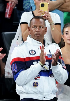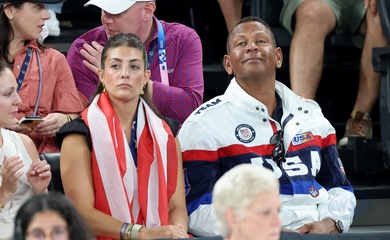 Gwiazdy na meczu koszykówki pomiędzy Stanami Zjednoczonymi a Brazylią (122–87) podczas Igrzysk Olimpijskich w Paryżu w 2024 r.