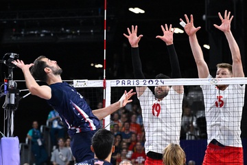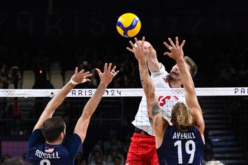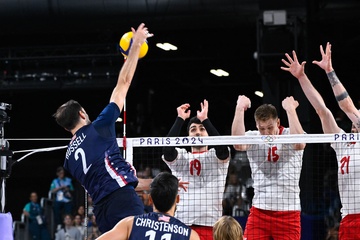 Półfinałowy mecz siatkówki pomiędzy Stanami Zjednoczonymi a Polską podczas Igrzysk Olimpijskich Paryż 2024 (OG) na stadionie Arena Paris Sud