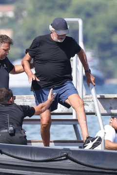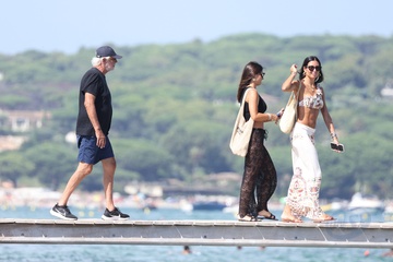 Flavio Briatore et Elisabetta Gregoraci embarquent sur une annexe au Club 55 à Saint-Tropez