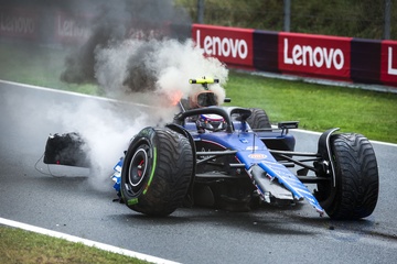 Samochód Logana Sargeanta (USA) brutalnie opuścił tor i zapalił się podczas wolnych treningów przed Grand Prix Holandii F1 w Zandvoort 5