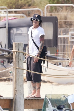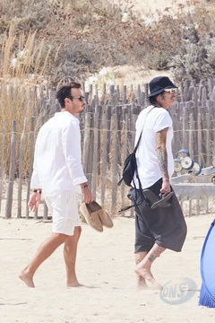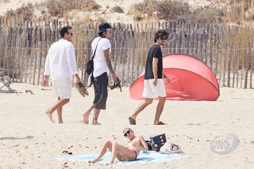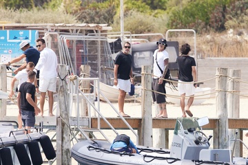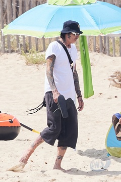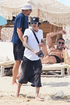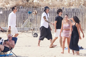 Tommy Lee i jego synowie Brandon i Dylan przybywają na plażę w Saint-Tropez, aby udać się na lunch