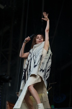 PJ Harvey na koncercie podczas festiwalu Rock en Seine w parku Saint-Cloud