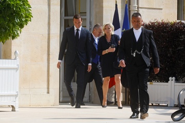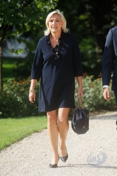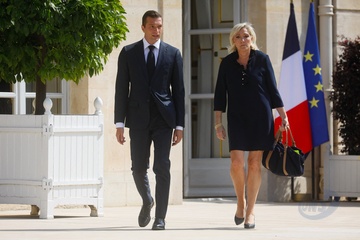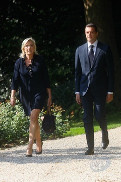 Marine Le Pen et Jordan Bardella sortent de leur entretien avec le président de la République à l'Elysée
