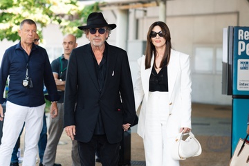 Monica Bellucci et son compagnon Tim Burton arrivent au Lido lors du 81ème Festival International du Film de Venise (Mostra)