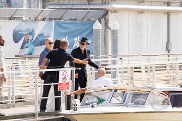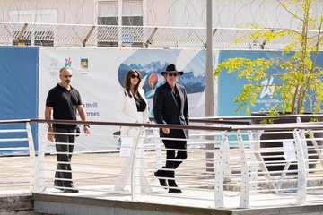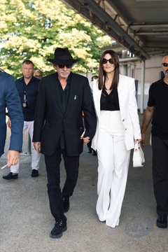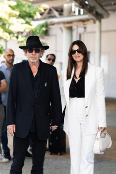 Monica Bellucci i jej towarzysz Tim Burton przybywają do Lido podczas 81. Międzynarodowego Festiwalu Filmowego w Wenecji (Mostra)