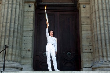 Elsa Zylberstein porte la flamme des Jeux Paralympiques à Paris, quelques heures avant la cérémonie d'ouverture