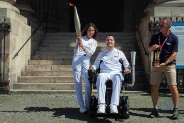 Elsa Zylberstein niesie płomień Igrzysk Paraolimpijskich w Paryżu, na kilka godzin przed ceremonią otwarcia