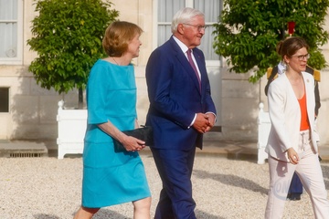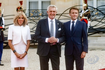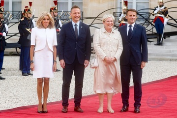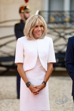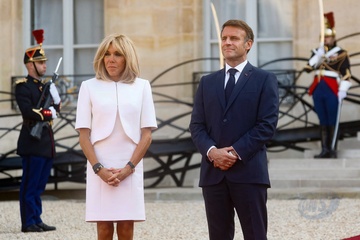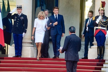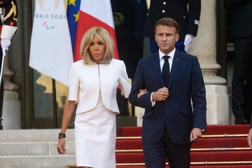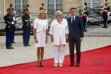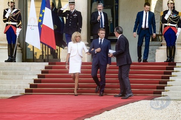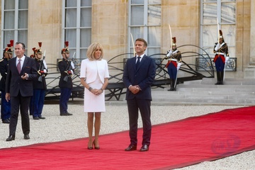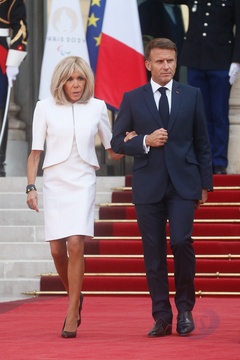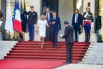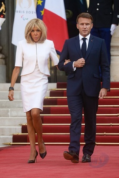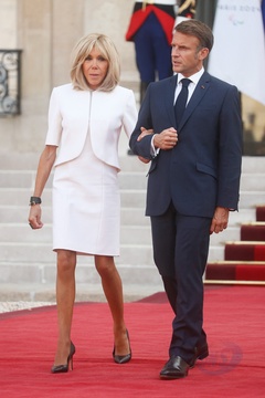 Le président Emmanuel Macron et sa femme Brigitte Macron accueillent les chefs d'état, de gouvernement et d'organisations internationales en amont de la cérémonie d'ouverture des jeux paralympiques de Paris 2024 au palais de l'Elysée à Paris