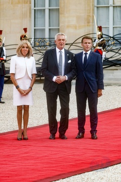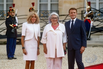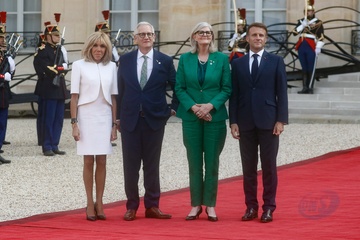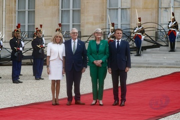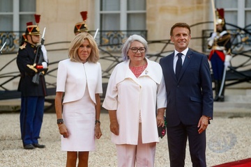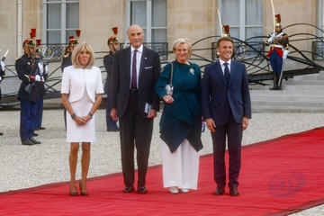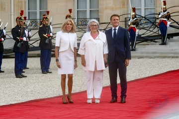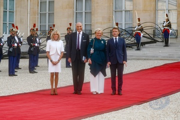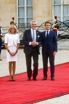 Prezydent Emmanuel Macron i jego żona Brigitte Macron witają głowy państw, rządów i organizacji międzynarodowych przed ceremonią otwarcia Igrzysk Paraolimpijskich Paryż 2024 w Pałacu Elizejskim w Paryżu 79