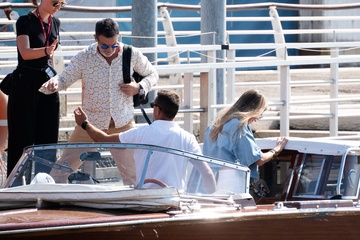 Antonio Banderas i jego partnerka Nicole Kimpel przyjeżdżają do Wenecji podczas 81. Międzynarodowego Festiwalu Filmowego w Wenecji (Mostra