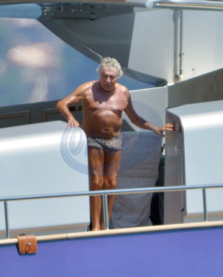Roberto Cavallli z mloda dziewczyna na jachcie w Monaco