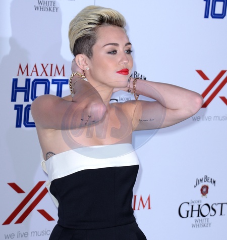 Miley Cyrus - dziwny makijaz wkolo ust na imprezie Maxim