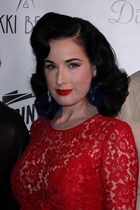 Cannes - Dita Von Teese w czerwonej koronkowej sukni