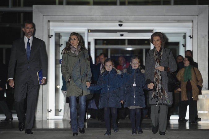 Ksiezna Letizia i ksiaze Filip z corkami odwiedzili krola Hiszpanii w szpitalu, Madryd
