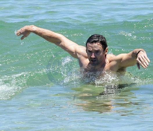 Hugh Jackman na plazy w Sydney