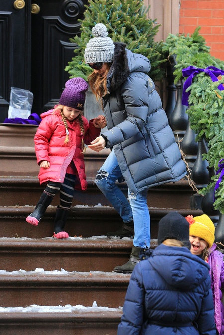 Sarah Jessica Parker z coreczkami wychodzi z domu, Nowy Jork
