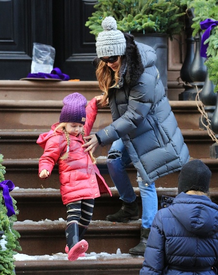 Sarah Jessica Parker z coreczkami wychodzi z domu, Nowy Jork