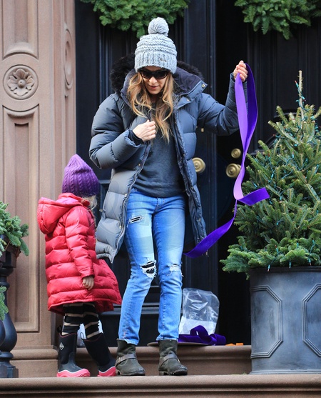 Sarah Jessica Parker z coreczkami wychodzi z domu, Nowy Jork