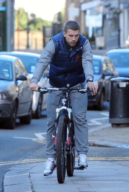 Lukasz Podolski z synem na rowerach, Londyn