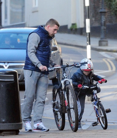 Lukasz Podolski z synem na rowerach, Londyn