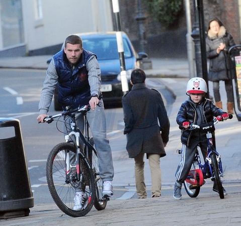 Lukasz Podolski z synem na rowerach, Londyn