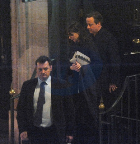 David Cameron z zona wychodza z restauracji