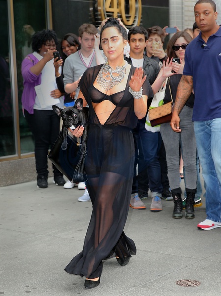 Lady Gaga w odwaznym spodnium z pupilem w Nowym Jorku