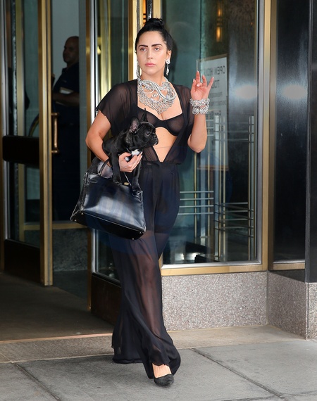 Lady Gaga w odwaznym spodnium z pupilem w Nowym Jorku