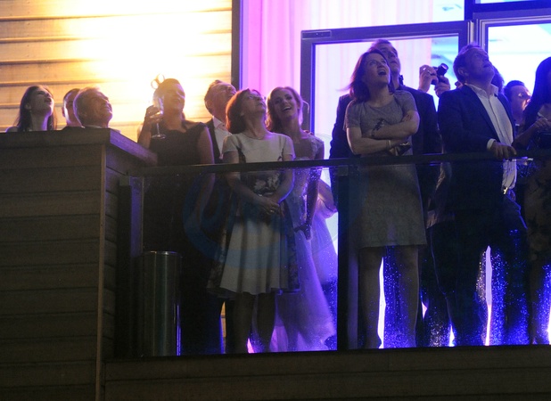 Goscie na weselu Izabeli Janachowskiej ogladaja mecz