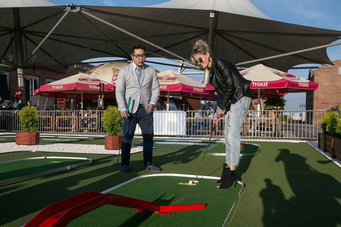 Agnieszka Popielewicz i Bilguun Ariunbaatar - otwarcie pola do mini golfa