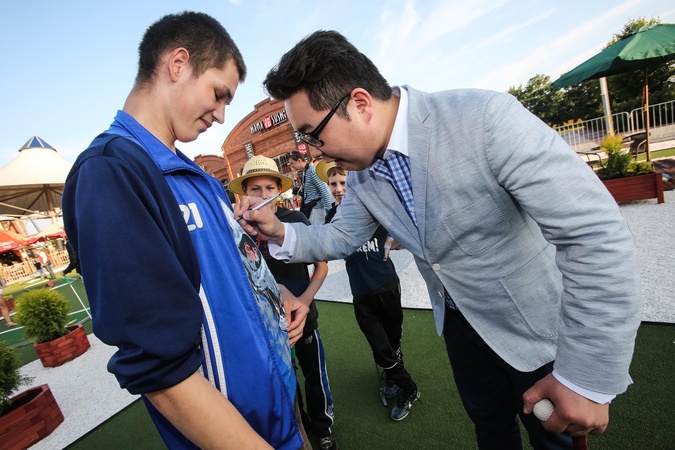 Agnieszka Popielewicz i Bilguun Ariunbaatar - otwarcie pola do mini golfa