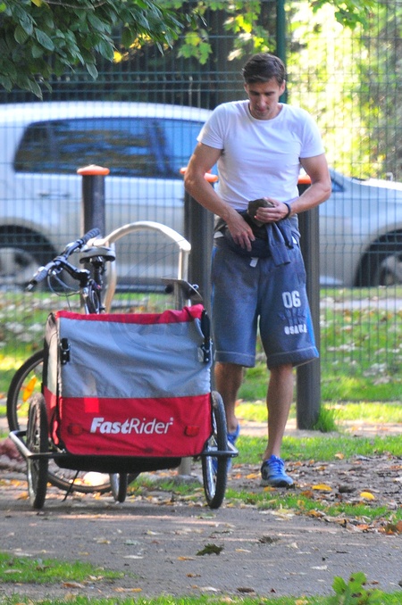 Jaroslaw Bieniuk cwiczy na plenerowej silowni PAPARAZZI