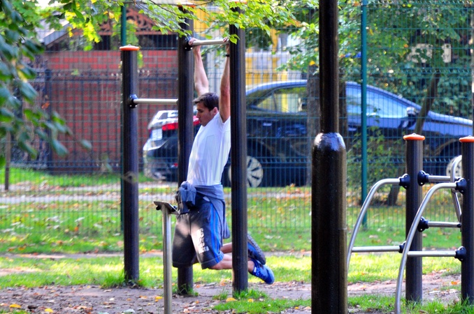 Jaroslaw Bieniuk cwiczy na plenerowej silowni PAPARAZZI
